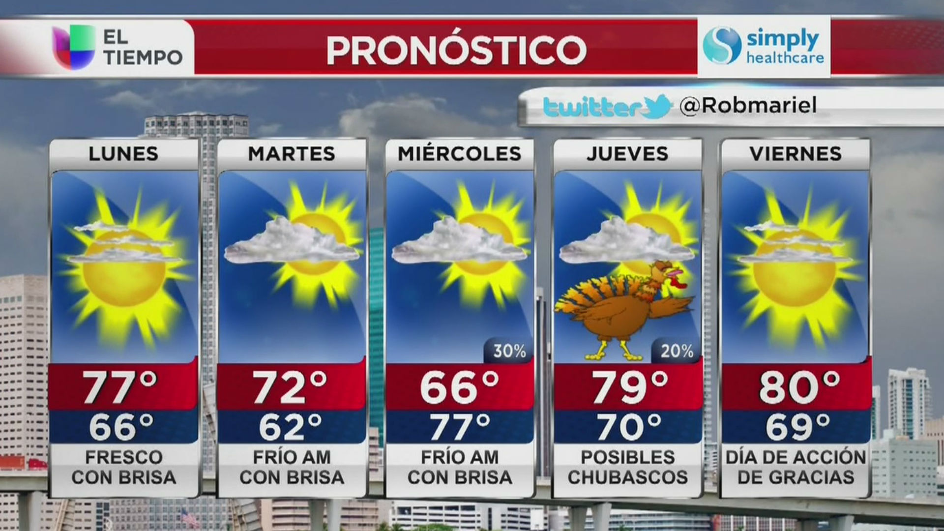 El pronóstico del clima para este jueves.